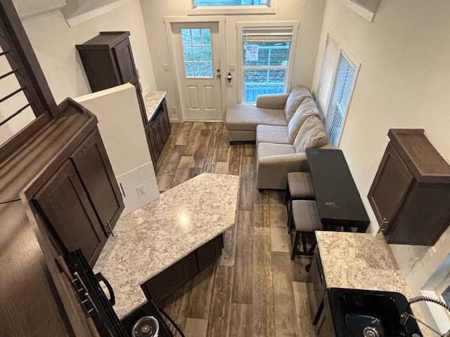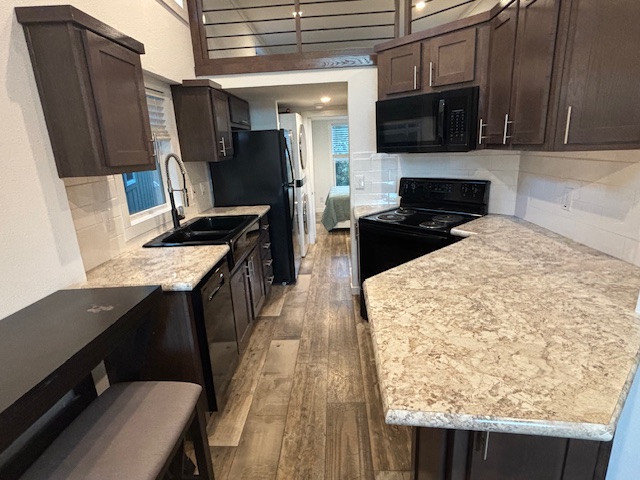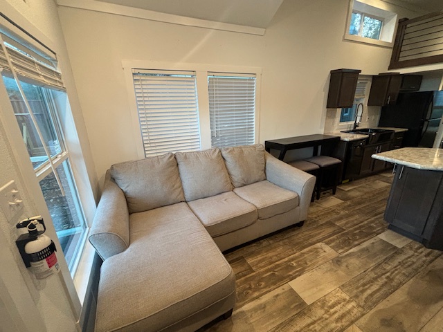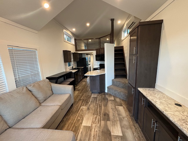This is a 2022 Athens 527B model with a downstairs bedroom and a loft. Coming in at 399sf, it has a front porch entry with a trapezoidal picture window above, and bedroom at the rear of the home. Financing is available for qualified buyers.